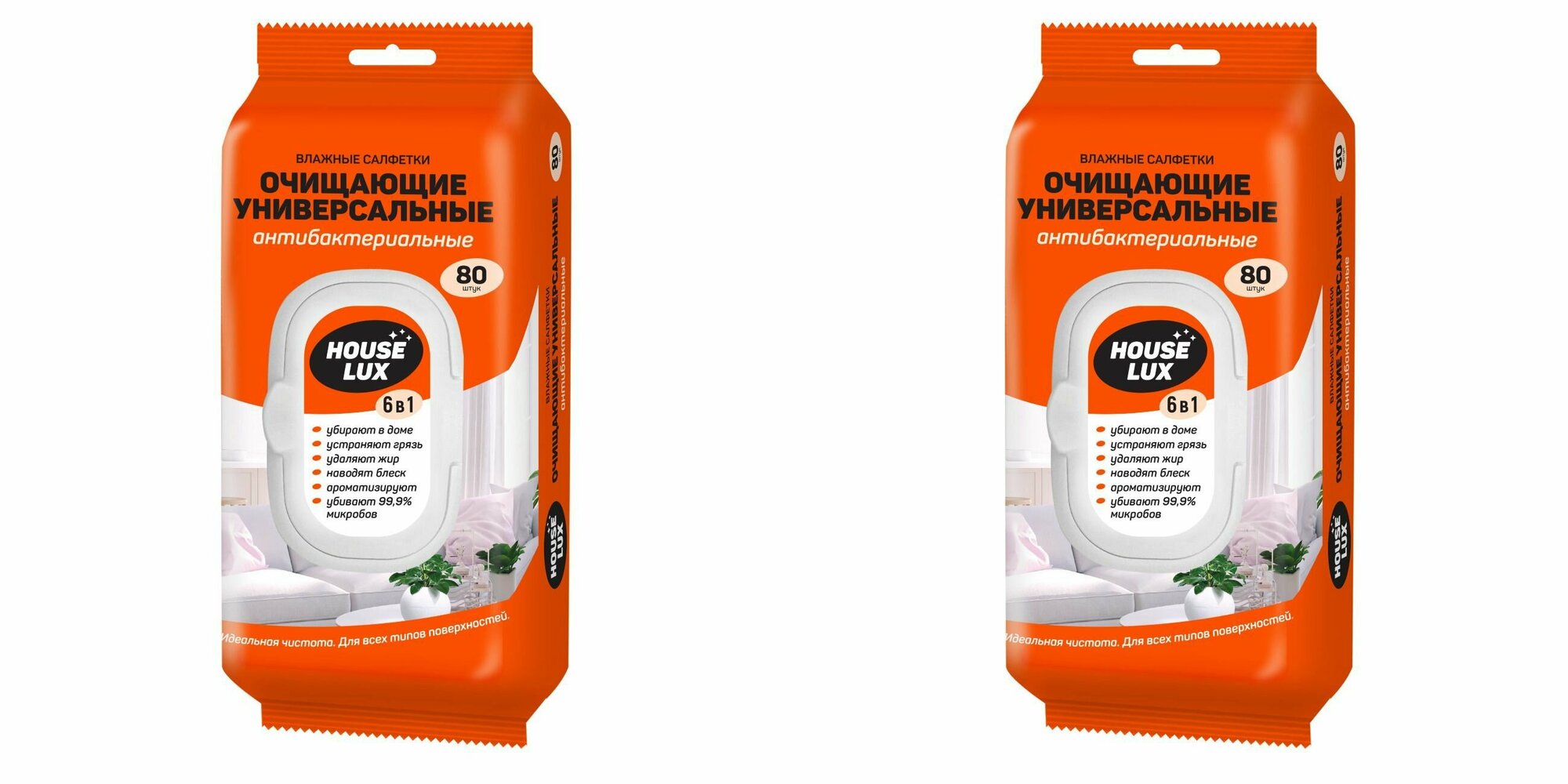 House Lux № 80 Антибактериальные универсальные влажные салфетки 6 in 1 ,2 шт