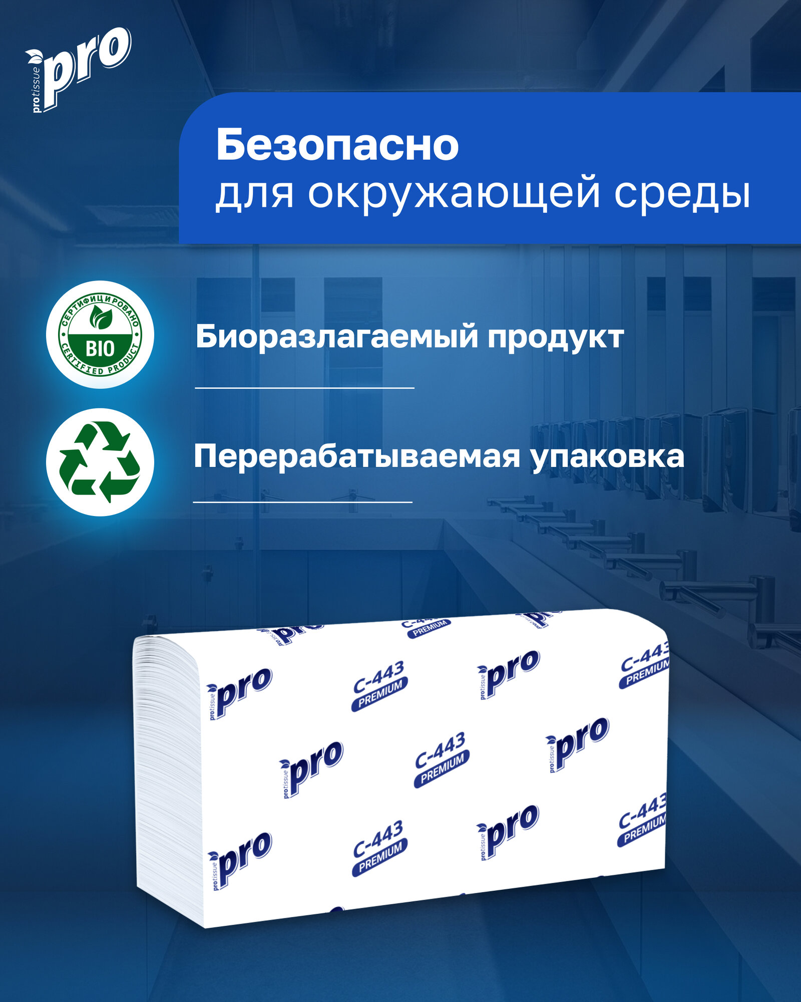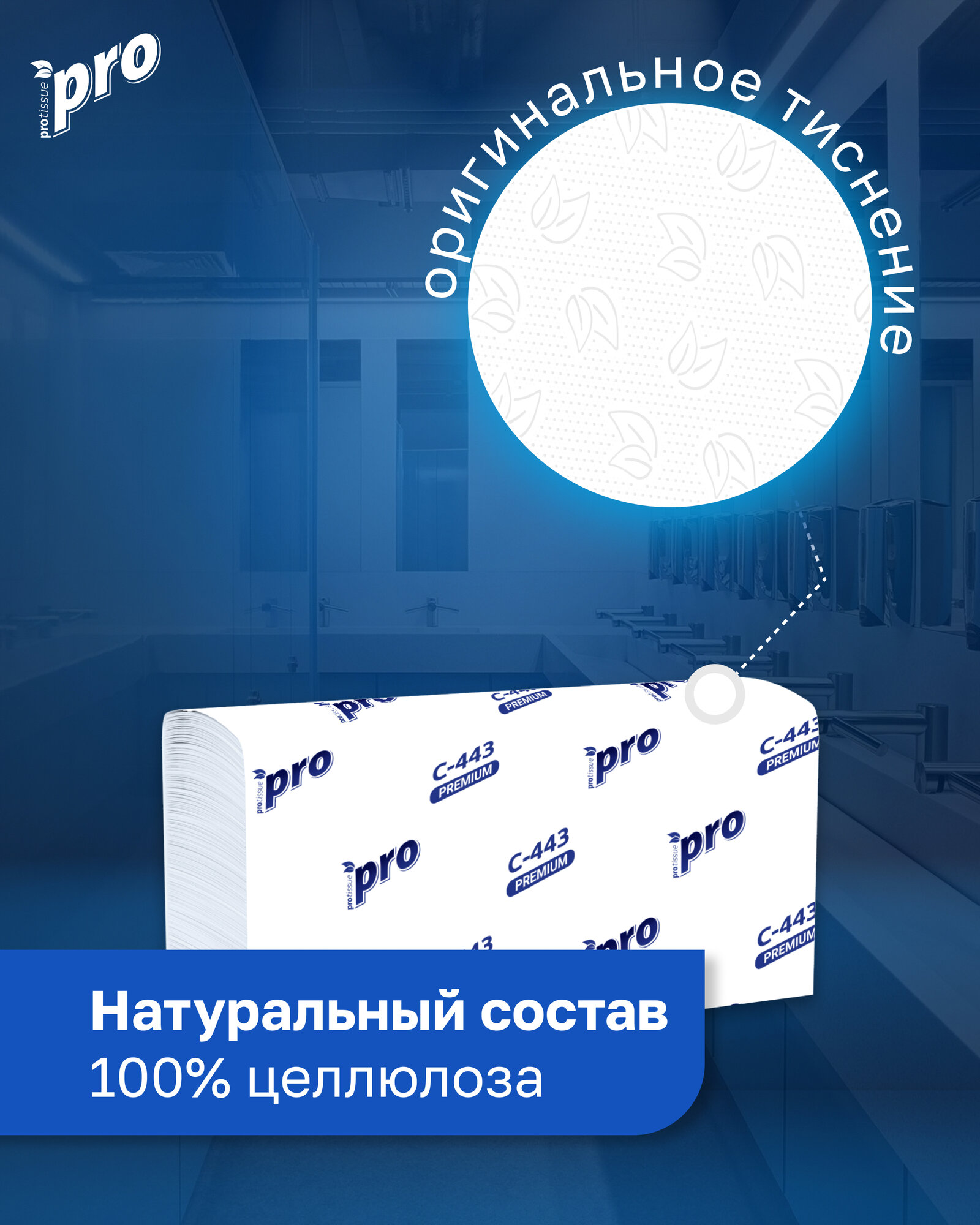 Полотенца бумажные листовые PROtissue С443 Z, 2 сл, 190 л, 1 пачка, Premium