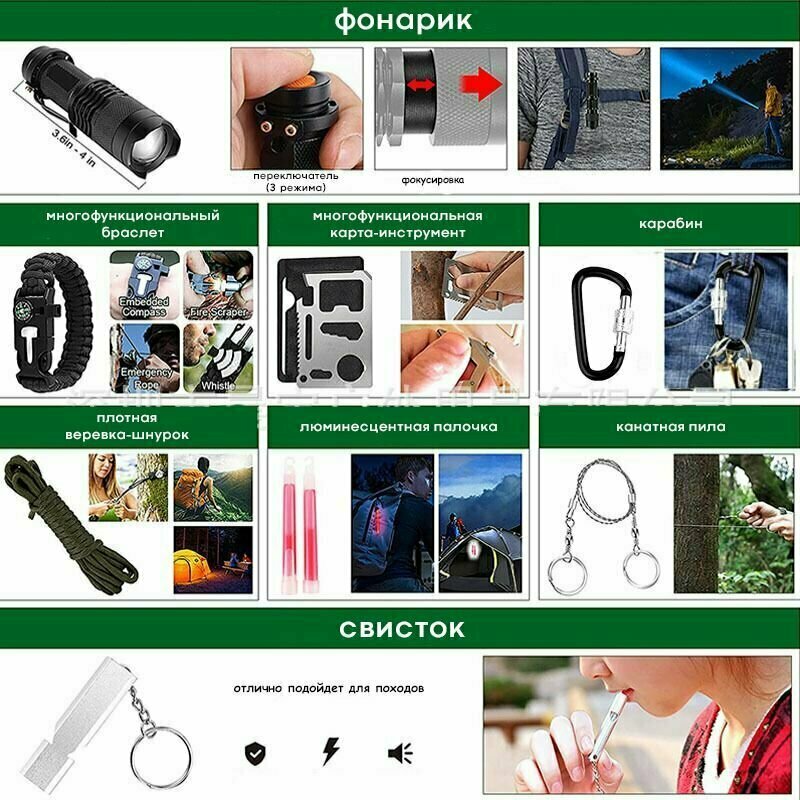 Отзывы на Набор для походов, путешествий и выживания на природе, 100 предметов