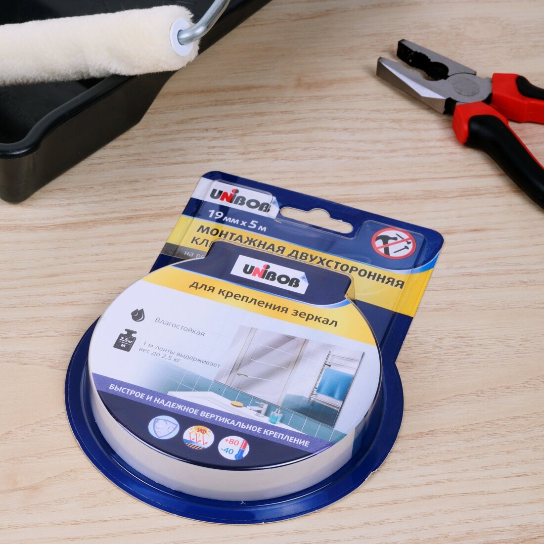 Лента UNIBOB для защиты поверхностей, двусторонняя, устойчива к УФ, 19х5 м информация: