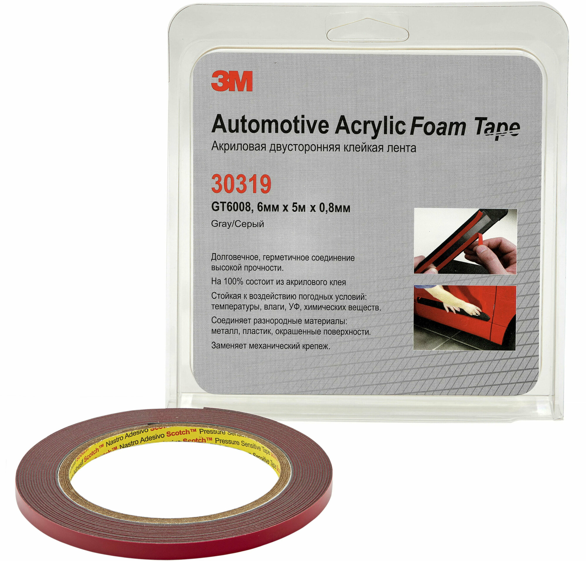 Клейкая лента монтажная 3M GT6008 6ммx5м, двухсторонняя, акриловая информация: