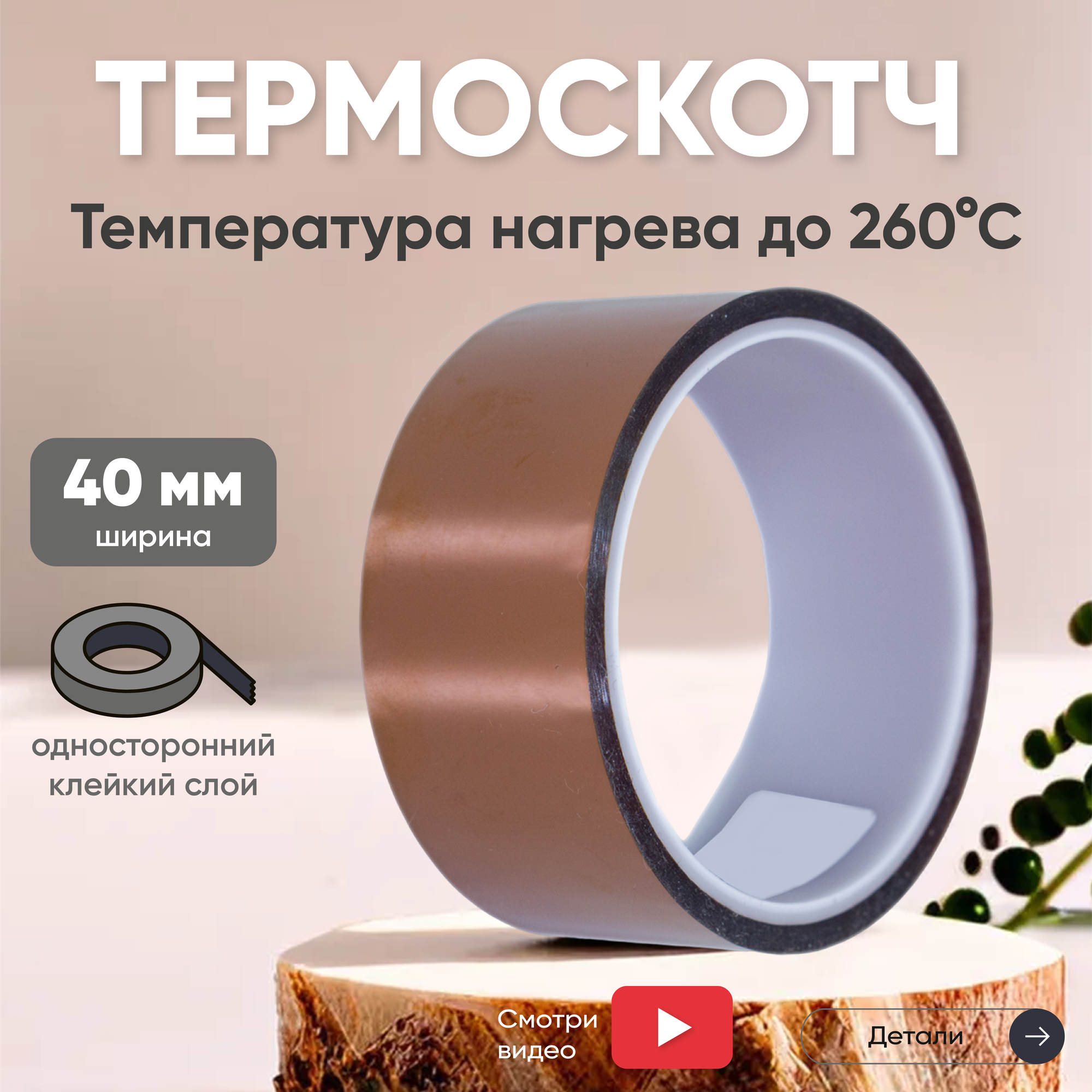 Отзывы на Термостойкая клейкая лента (термоскотч) шириной 40 мм, 33 метра, нагрев до 260 градусов Цельсия
