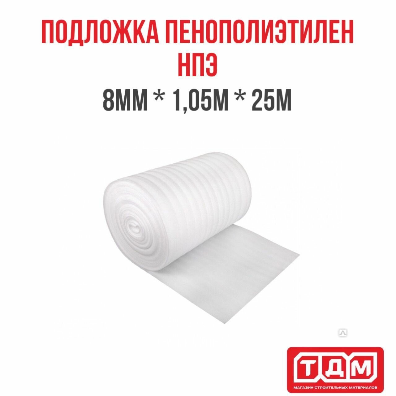 Подложка из пенополиэтилена под ламинат, линолеум, паркет 8мм*1,05 м*25м информация: