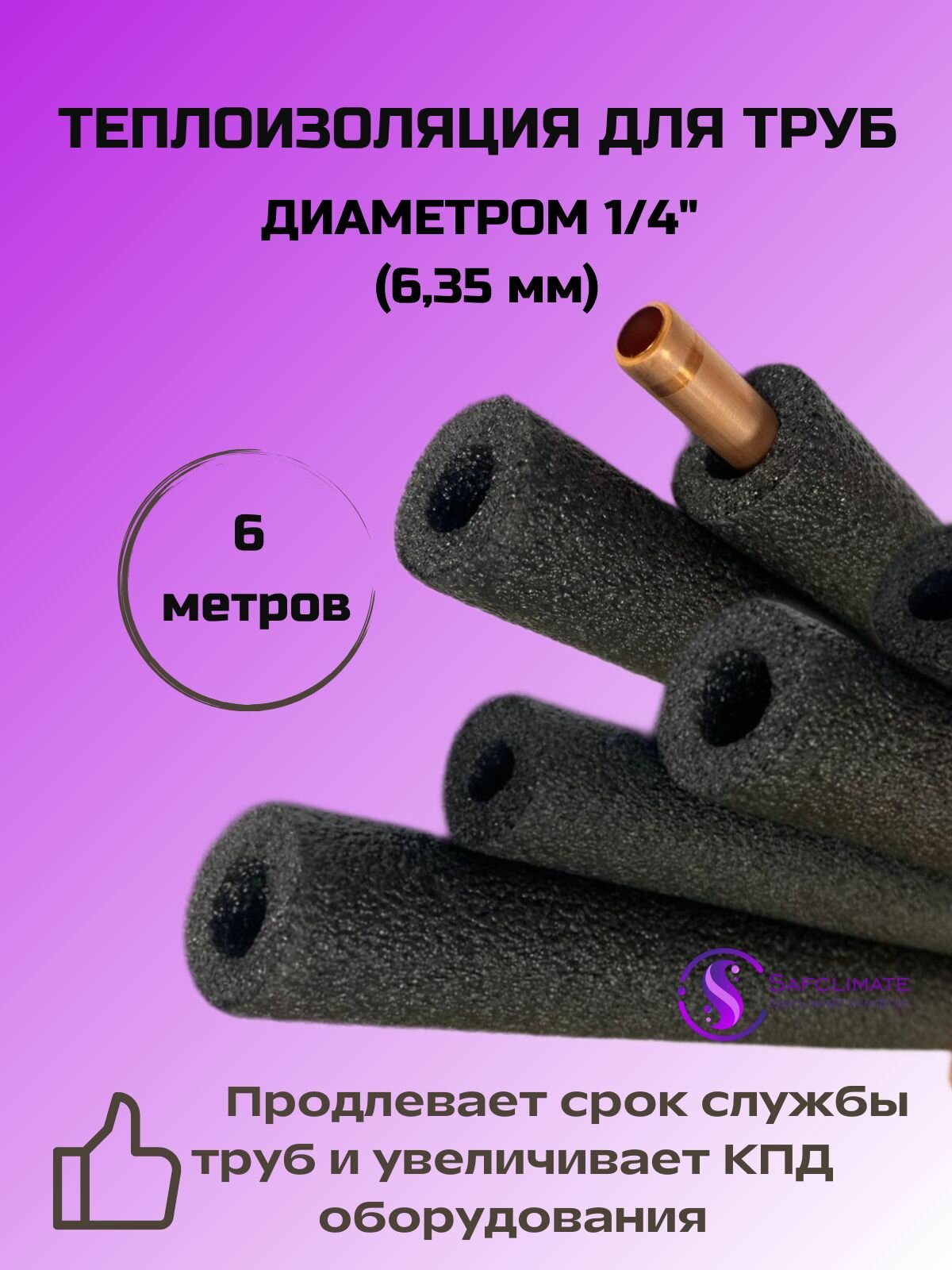 Теплоизоляция для медных трубок кондиционера Энергофлекс 6/6 (1/4), 6 м информация: