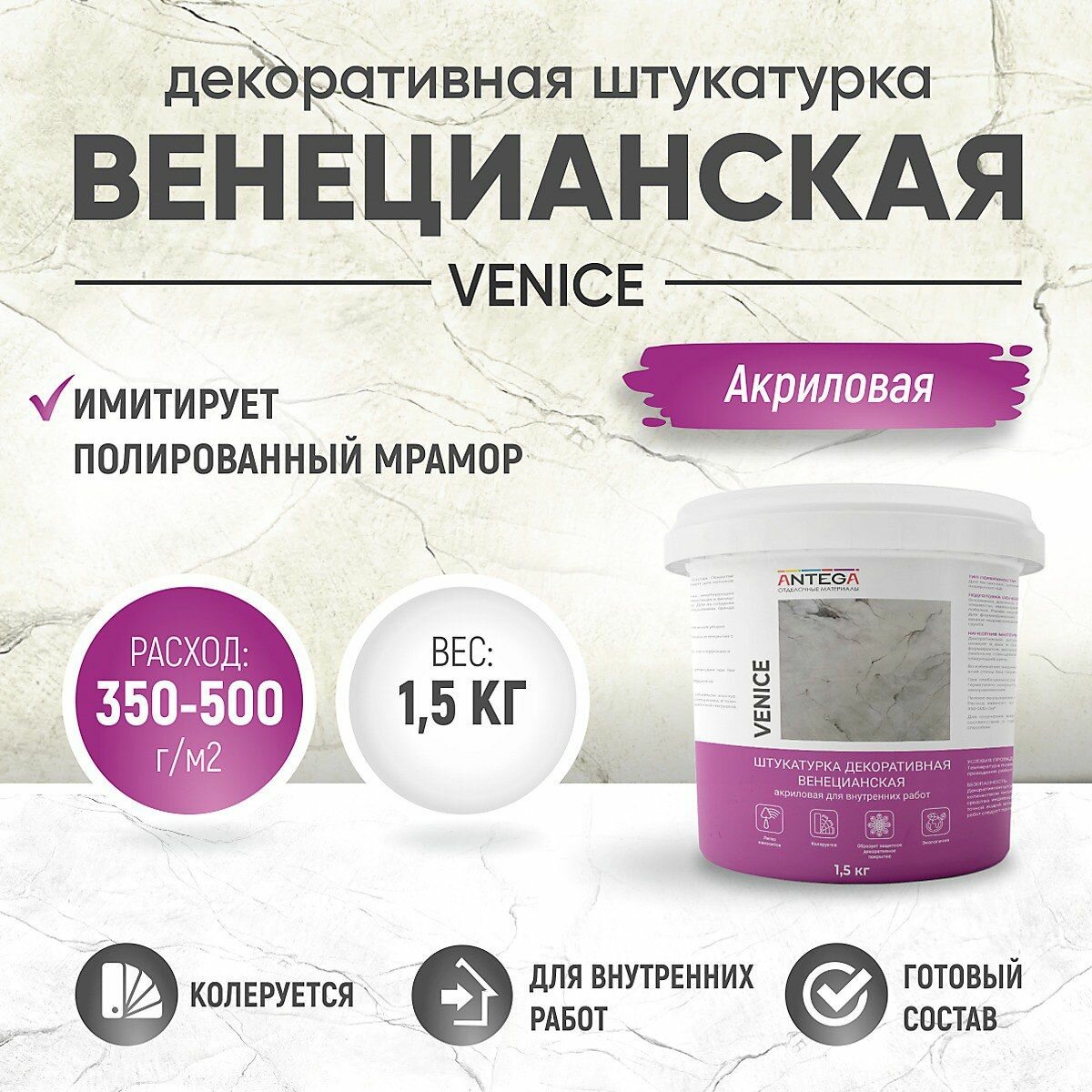 VENICE, 1,5 кг, венецианская декоративная штукатурка, ANTEGA информация: