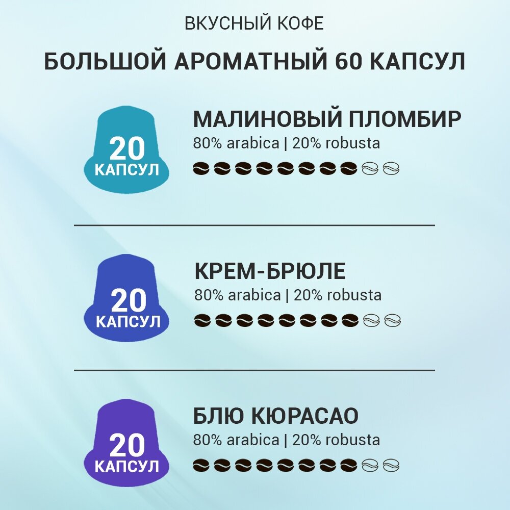 10 цен на Набор Вкусный кофе в капсулах - "Большой ароматный" - 3 сорта по 20 шт. Капсулы для кофемашины Nespresso Неспрессо