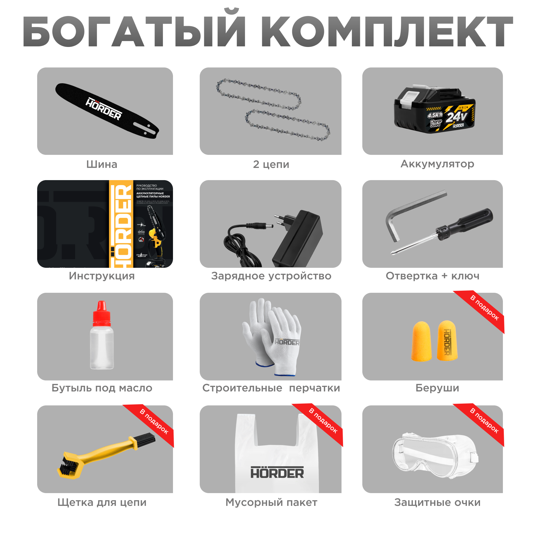 Отзывы на Цепная аккумуляторная мини пила HORDER HS-2430 Li1 ECO шина 12" 2 цепи и аккумулятор в комплекте