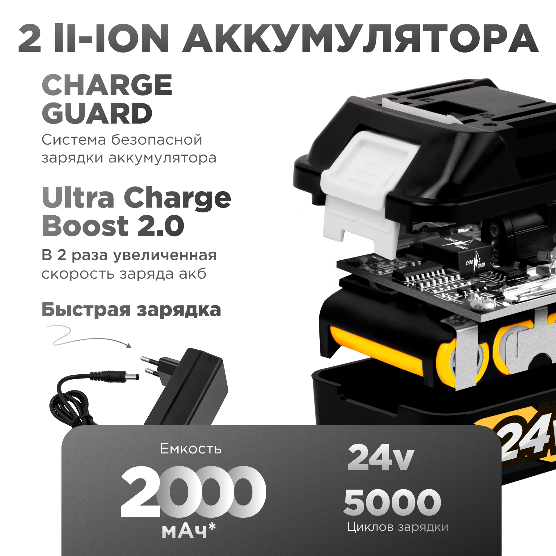Цепная мини пила HORDER HS-2406 Li2 в кейсе, 2 Li-ion аккумулятора 24 В 2 Ач, 3000 об/мин, 2 шины, 2 цепи 10/15 см информация: