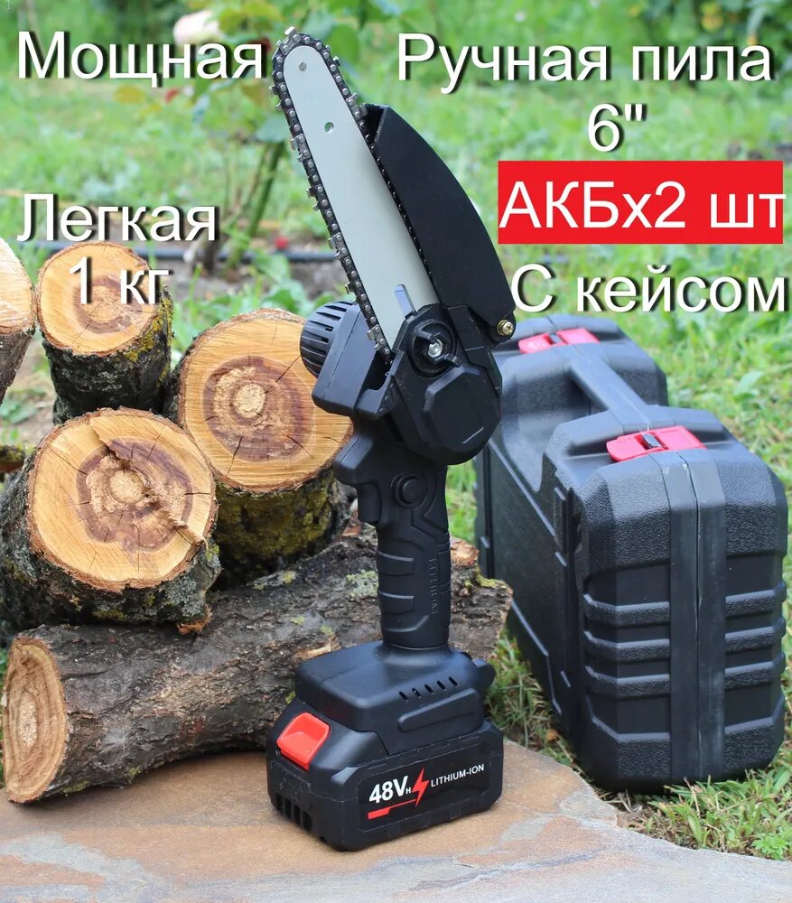 Цепная мини пила аккумуляторная ручная садовая, Портативная цепная аккумуляторная бензопила