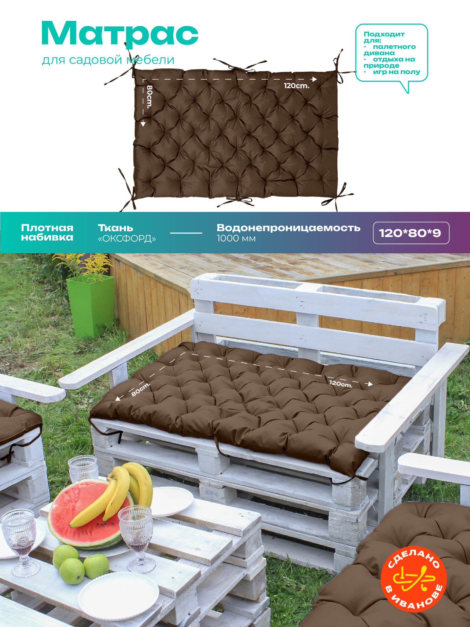 10 цен на Подушка матрас для мебели и паллет, матрас на подоконник Bio-Line 80х120 см с завязками для дома и дачи с водоотталкивающей пропиткой,шоколад