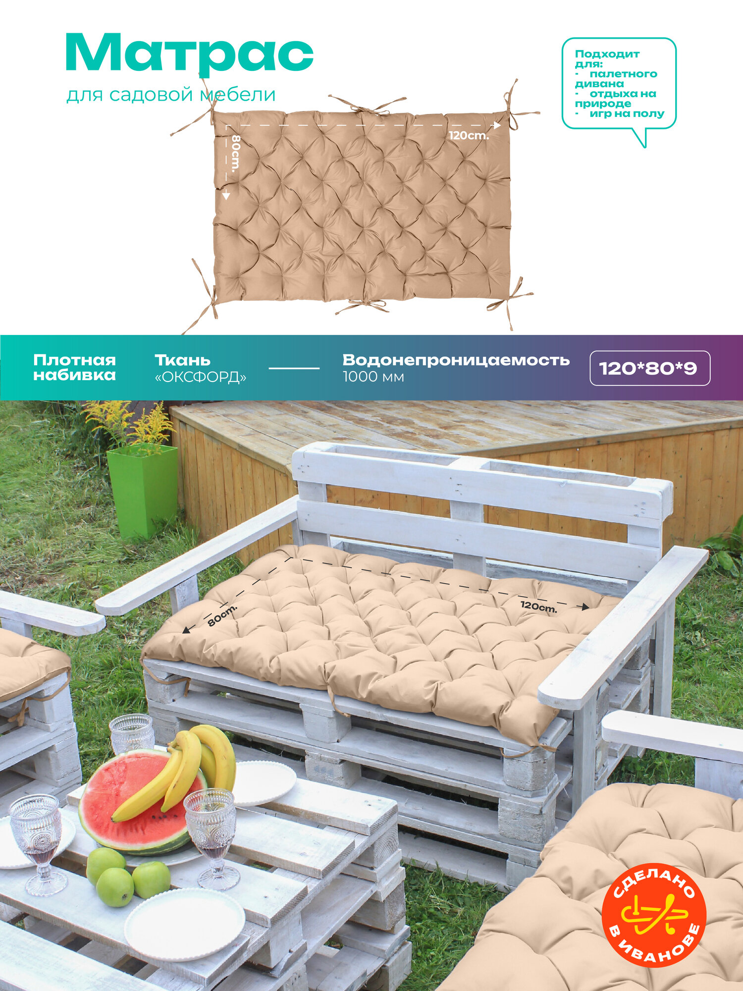 Подушка матрас для мебели и паллет, матрас на подоконник Bio-Line 80х120 см с завязками для дома и дачи с водоотталкивающей пропиткой, бежевый информация: