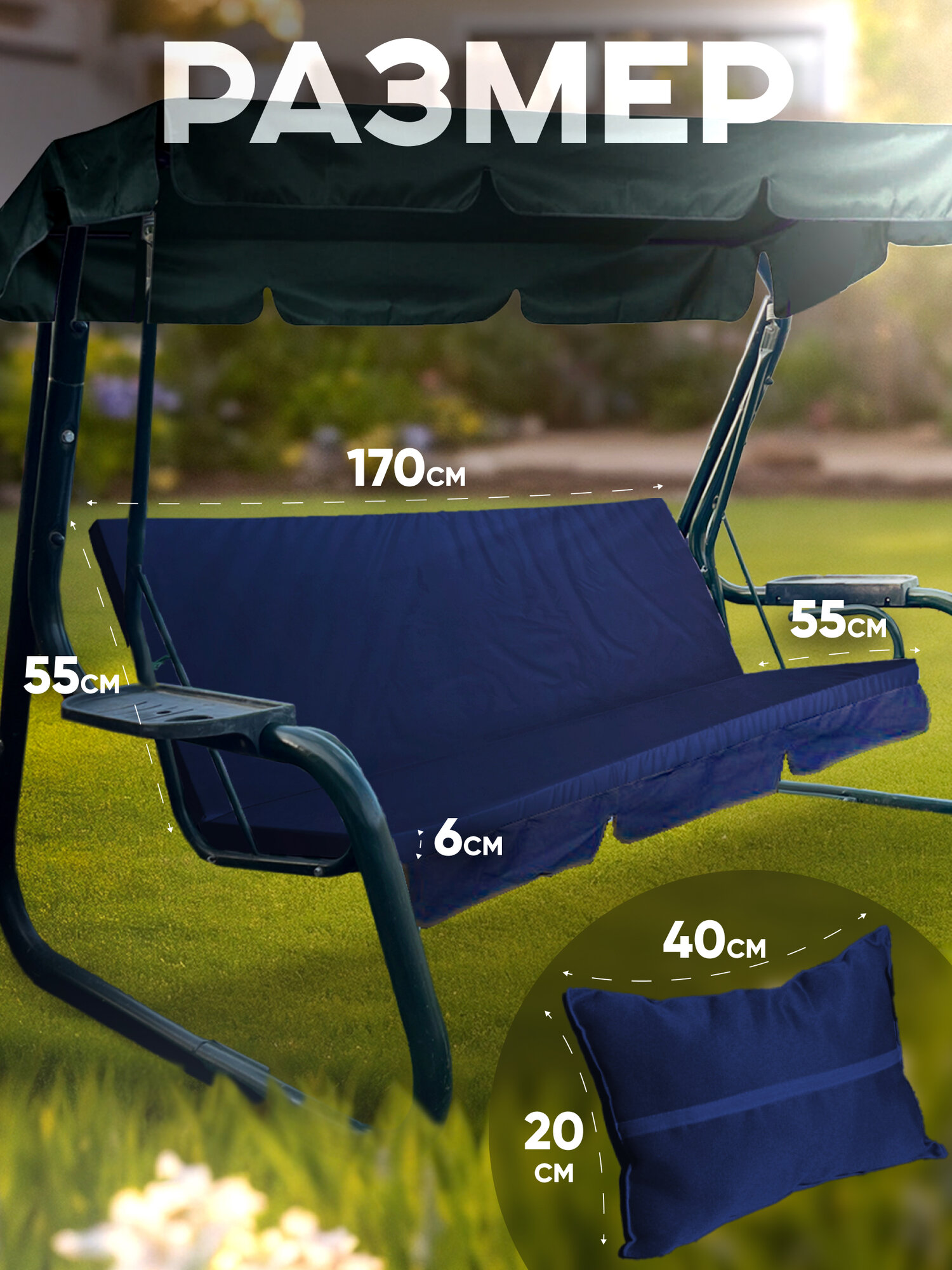 10 цен на Матрас для садовых качелей 170х55 см. Цвет: Темно-синий. Водонепроницаемый съемный чехол.