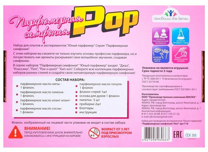Набор для экспериментов Инновации для Детей Юный Парфюмер: Парфюмерная симфония Поп (с натуральными информация: