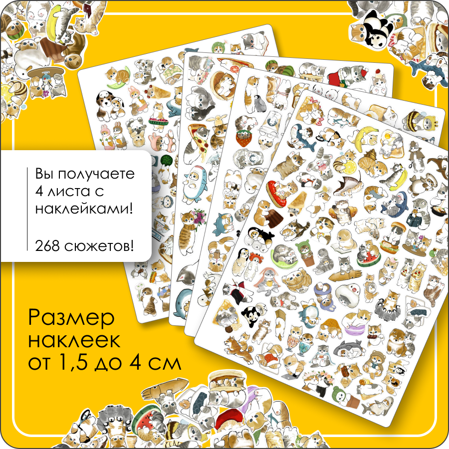 Наклейки котики большой набор, милые стикеры для детей на телефон, для творчества 268 шт 389 ₽