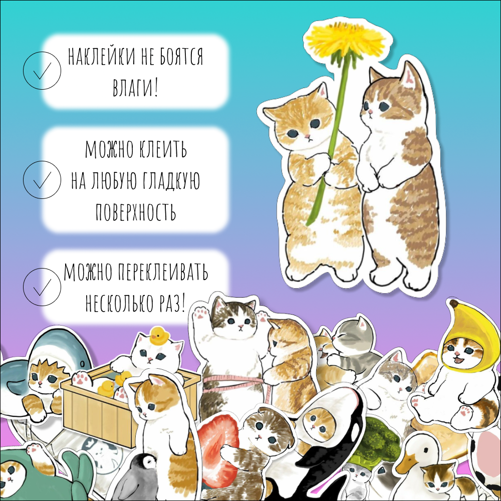 Наклейки котики набор, стикеры на телефон 84 шт информация:
