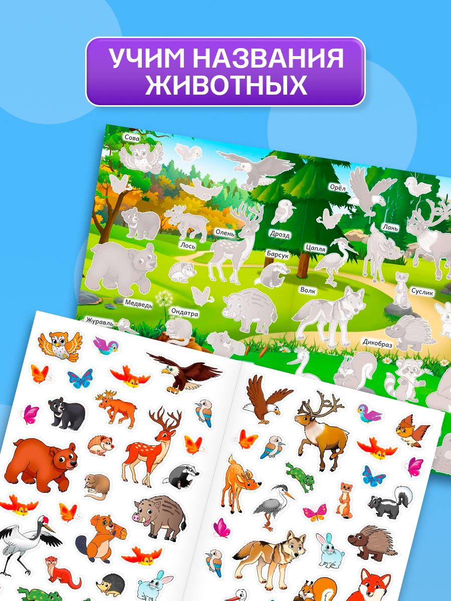 Отзывы на Книга познавательная с многоразовыми наклейками "Животные леса", формат А4, 55 наклеек, Буква-Ленд
