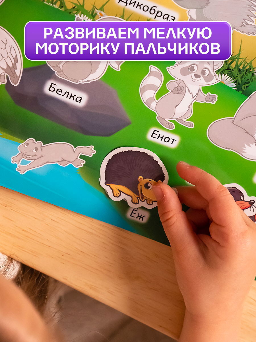 10 цен на Книга познавательная с многоразовыми наклейками "Животные леса", формат А4, 55 наклеек, Буква-Ленд