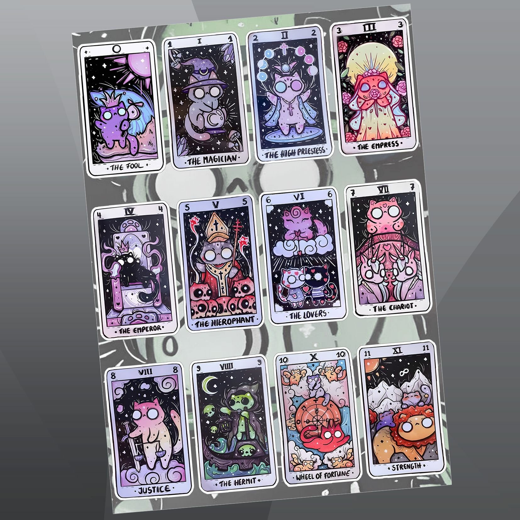 10 цен на Стикерпак Таро старшие арканы Мрачные Коты (карты 0-11) Набор виниловых наклеек
