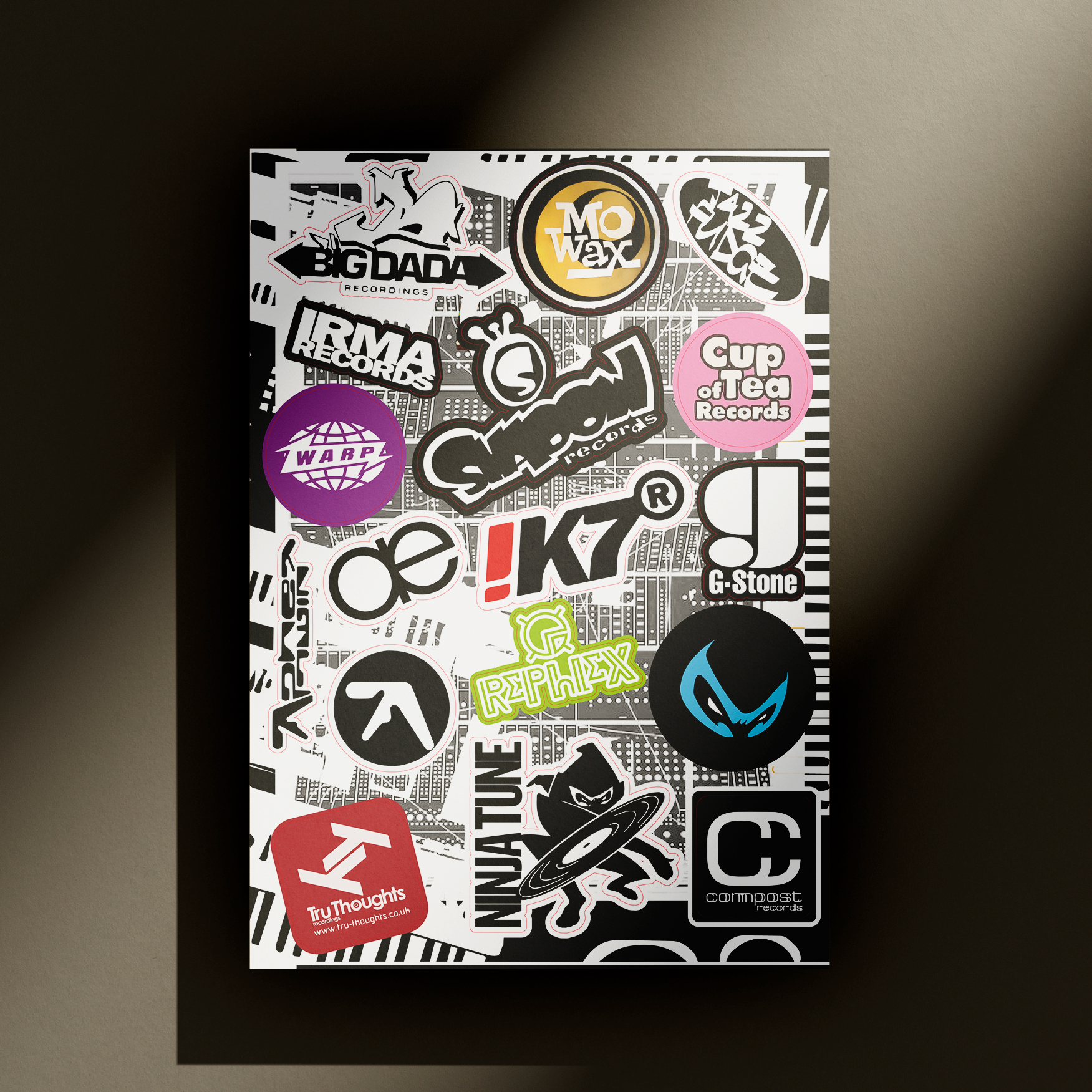 Стикерпак для диджеев музыкантов. Набор стикеров Trip Hop / Electronica. Размер А4/18шт.