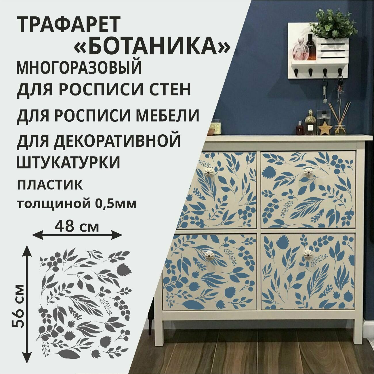 Отзывы на Трафарет "Ботаника" 60х52 см - для творчества и декора стен, мебели, плитки и штукатурки. Многоразовый, пластик 0,5 мм