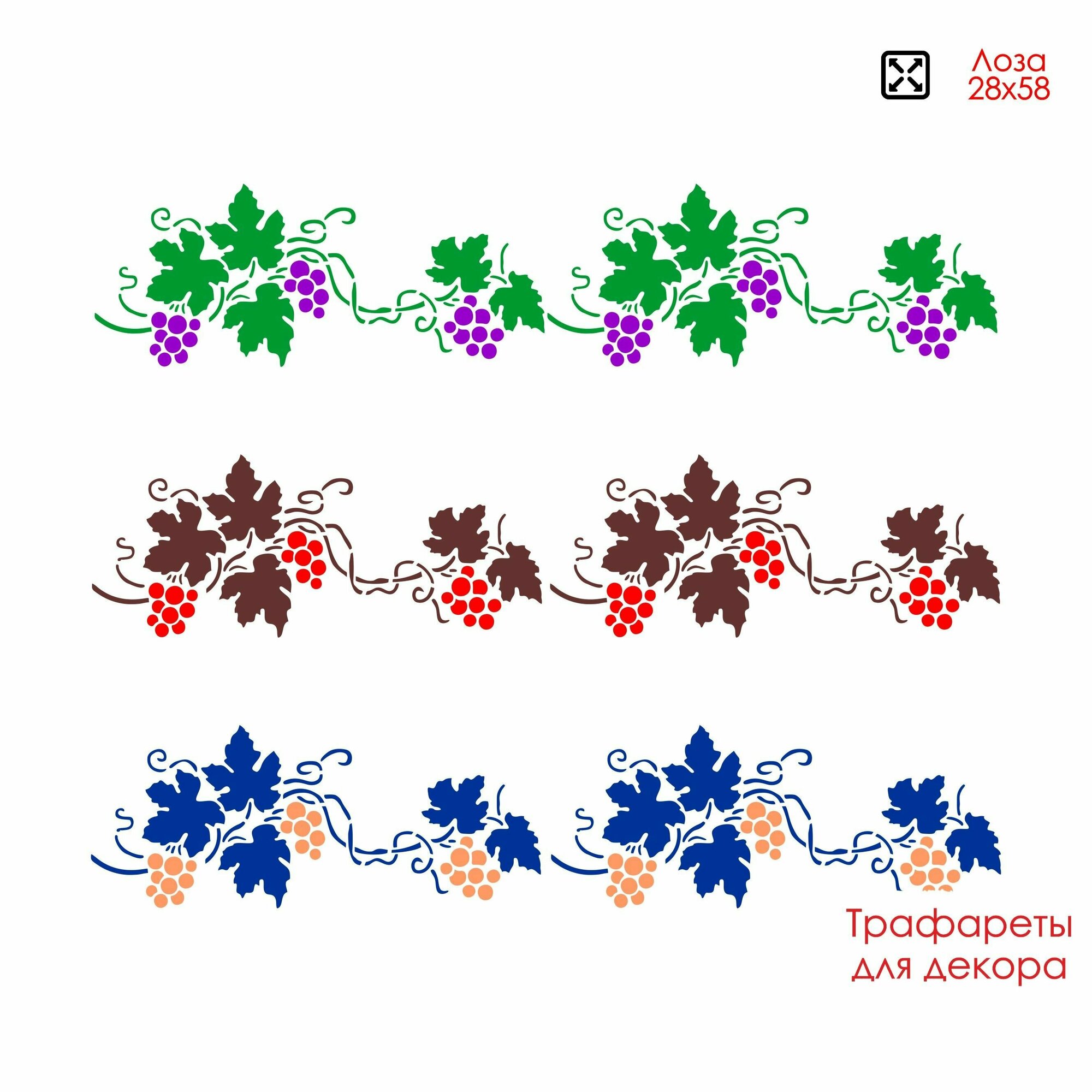 Трафарет пластиковый для декора и творчества, многоразовый. Бордюр - Виноградная лоза Трафарет для интерьера 28х58 см. Пластик 0,5 мм. информация: