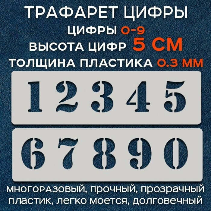 Трафарет Цифры-2 от 0 до 9. Высота цифр 5 см. Многоразовый информация:
