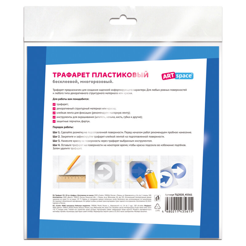 Трафарет ArtSpace 20х20 см "Цифры" (ТЦ2020_45561) информация: