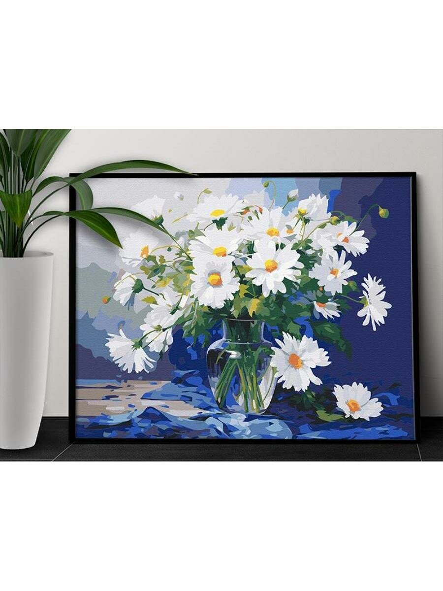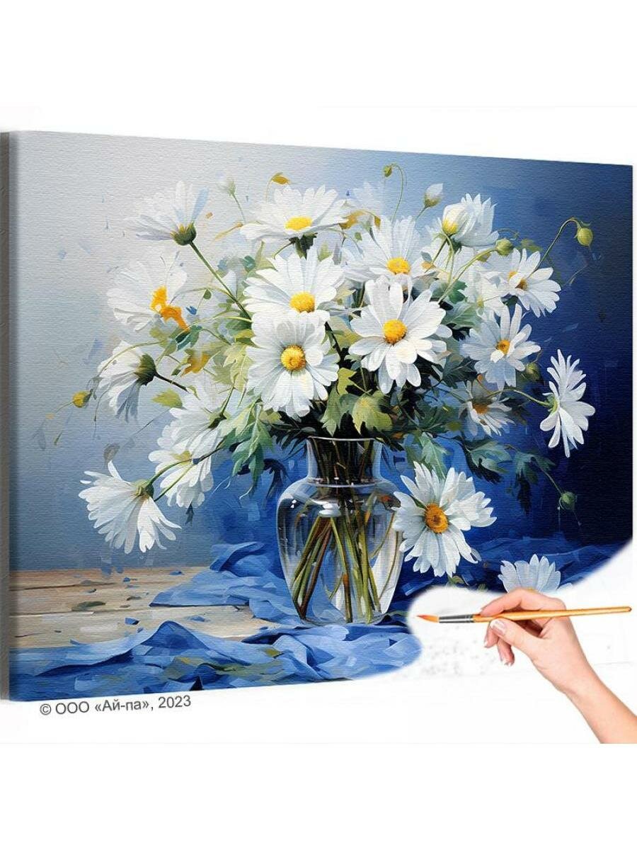 10 цен на Букет ромашек на голубом фоне Цветы Букет в вазе Лето Интерьерная Раскраска картина по номерам на холсте 40х50