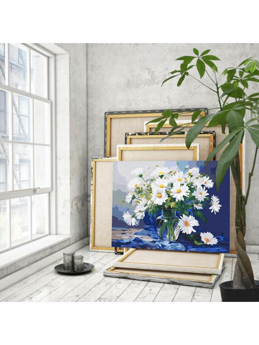 Отзывы на Букет ромашек на голубом фоне Цветы Букет в вазе Лето Интерьерная Раскраска картина по номерам на холсте 40х50