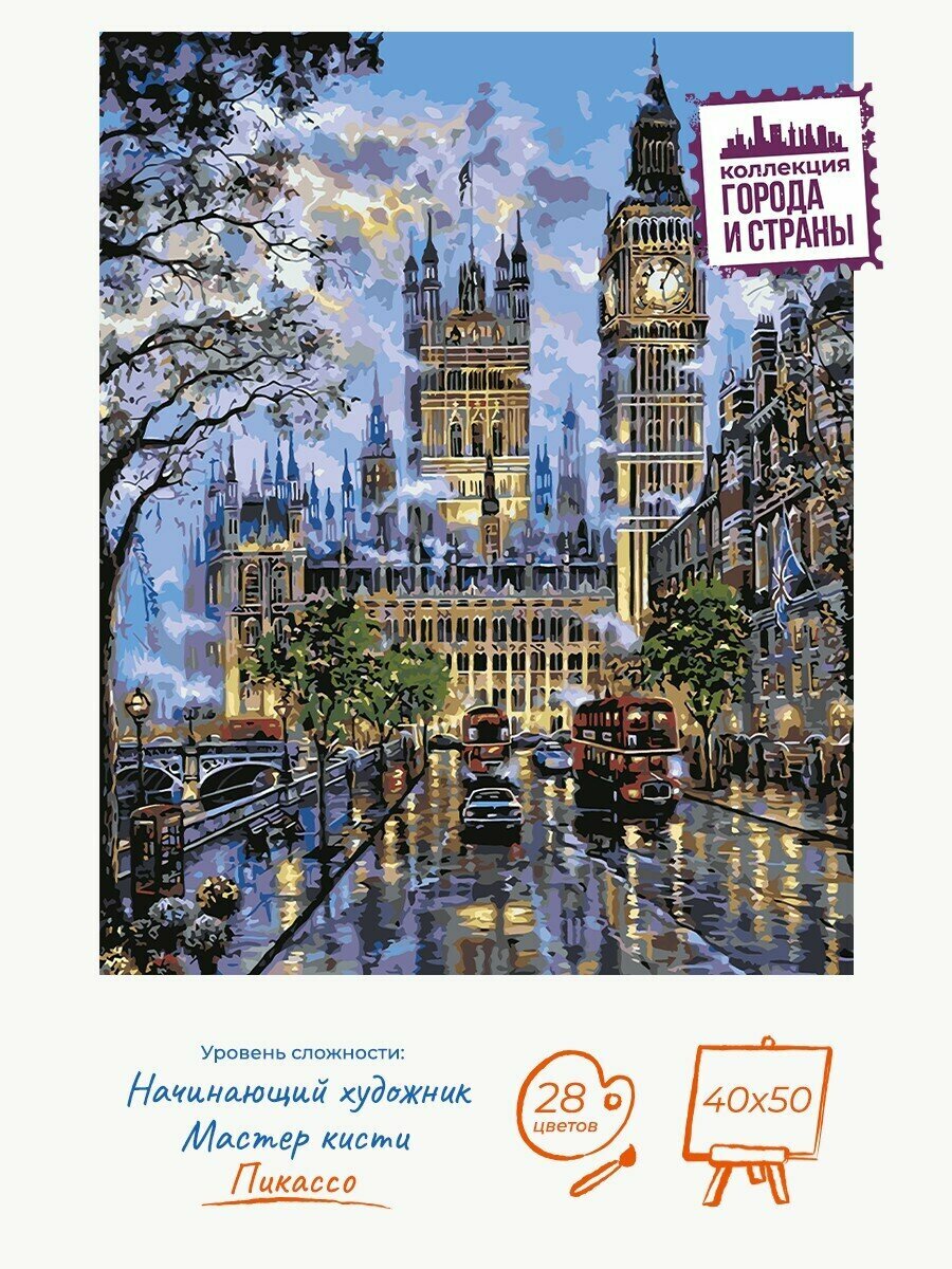 Отзывы на Картина по номерам Hobruk "Прогулка в Лондоне", на холсте на подрамнике 40х50, раскраска по номерам, архитектура / города и страны