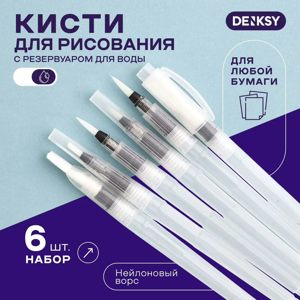 Кисти для рисования с резервуарами для воды DENKSY, 6 шт информация:
