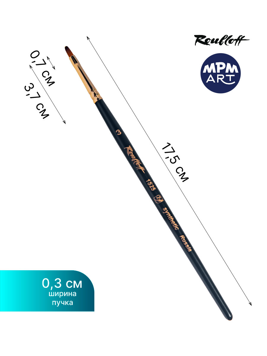Кисть художественная для рисования Roubloff 1S25 синтетика плоская № 3 короткая ручка информация: