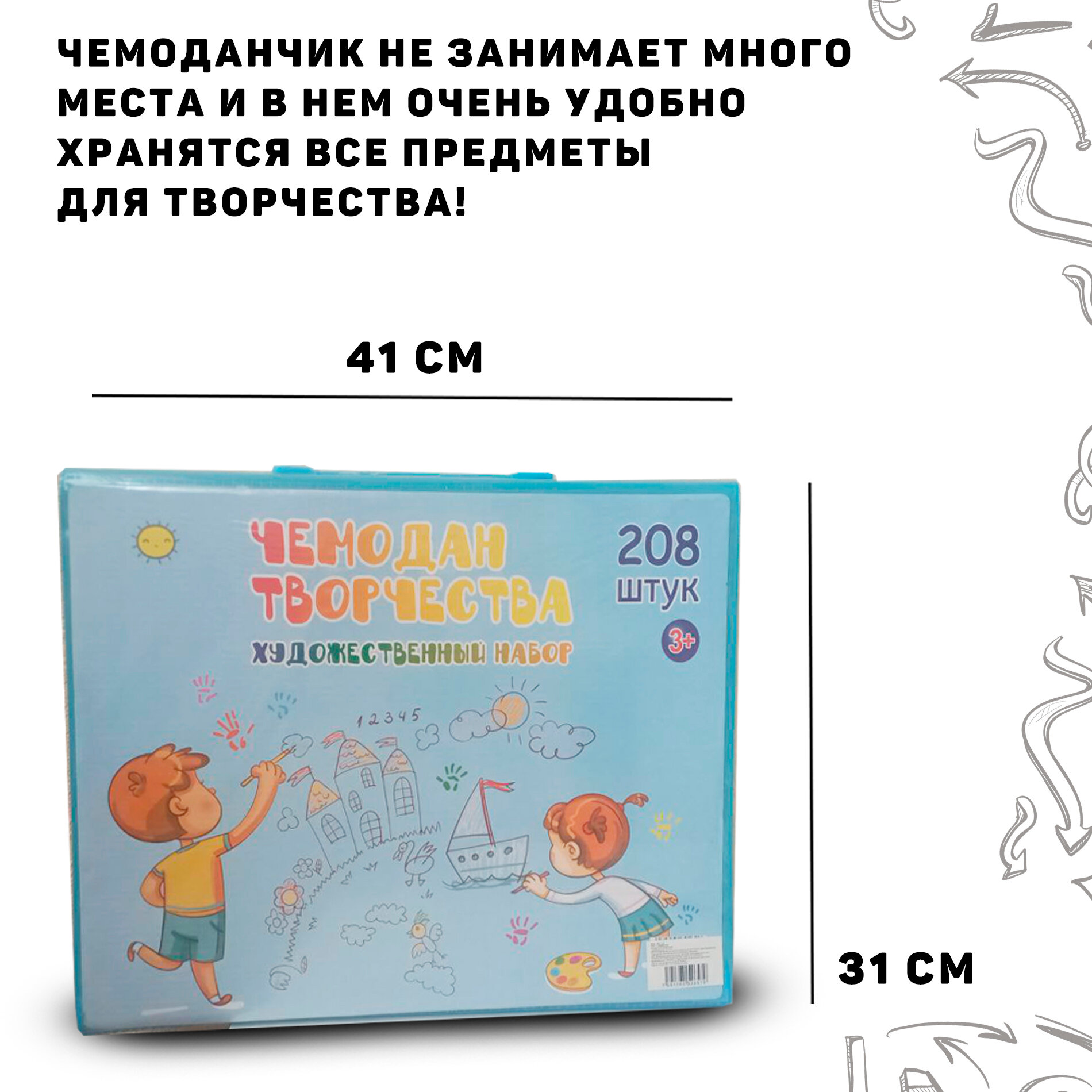 Набор для рисования/ Набор для детского твочества/ Детский набор/Рисование для детей/208 предметов/ информация: