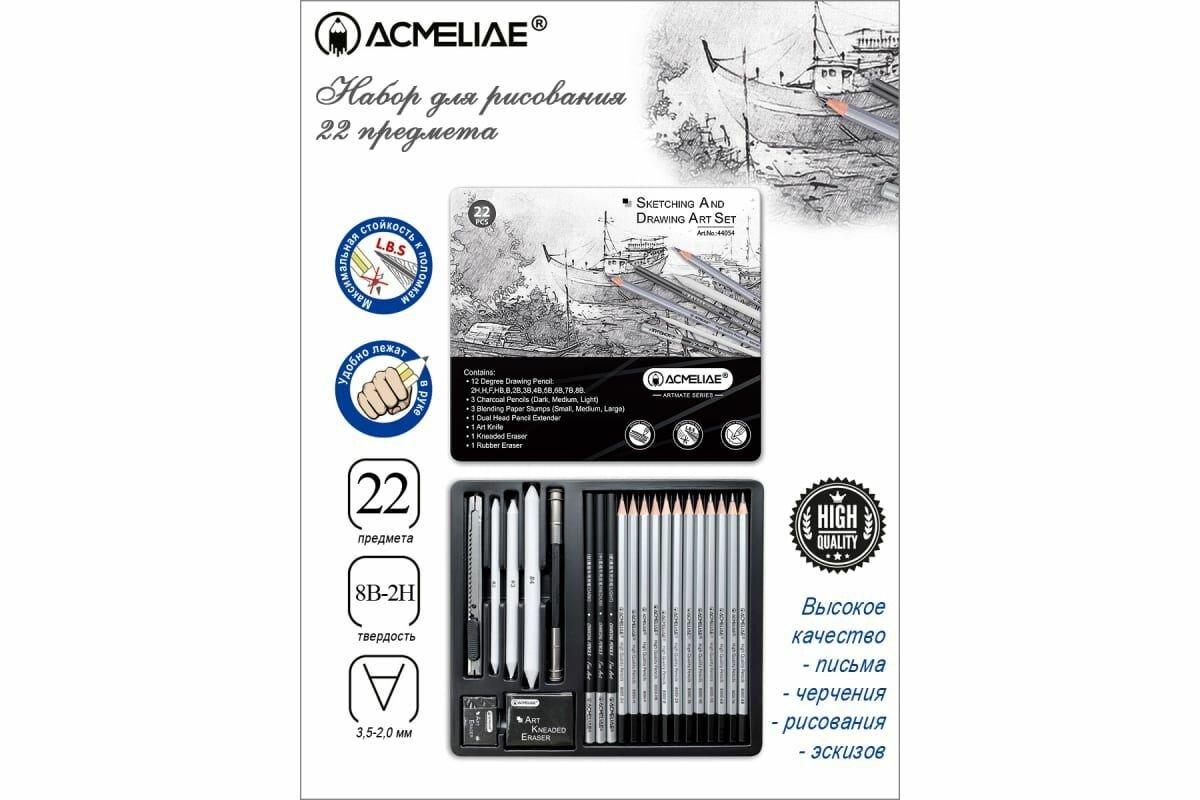 Набор для рисования и скетчинга ACMELIAE 22 предмета, в металлическом футляре 44054 информация: