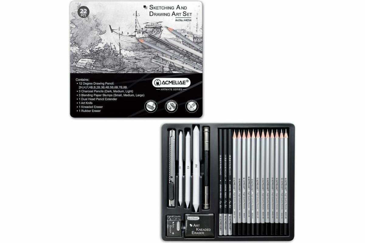 10 цен на Набор для рисования и скетчинга ACMELIAE 22 предмета, в металлическом футляре 44054