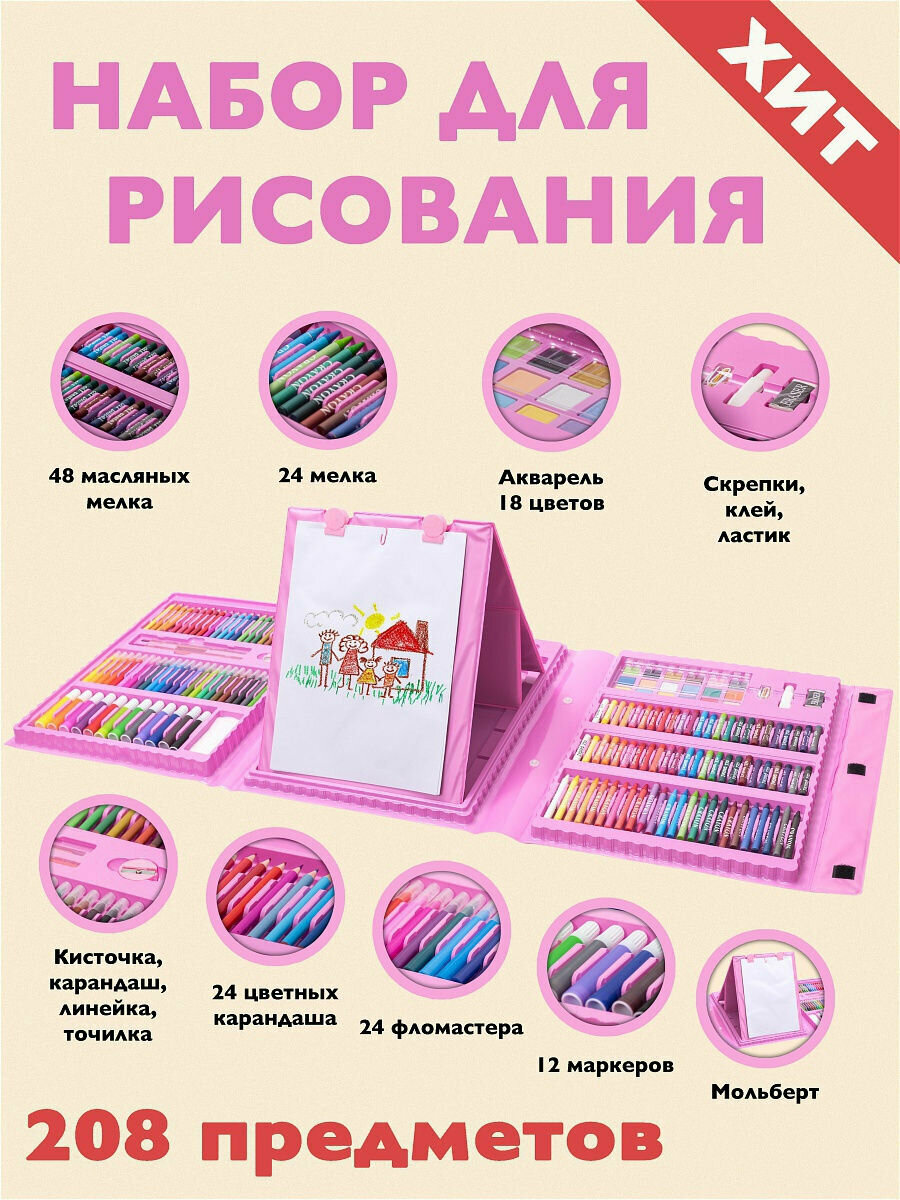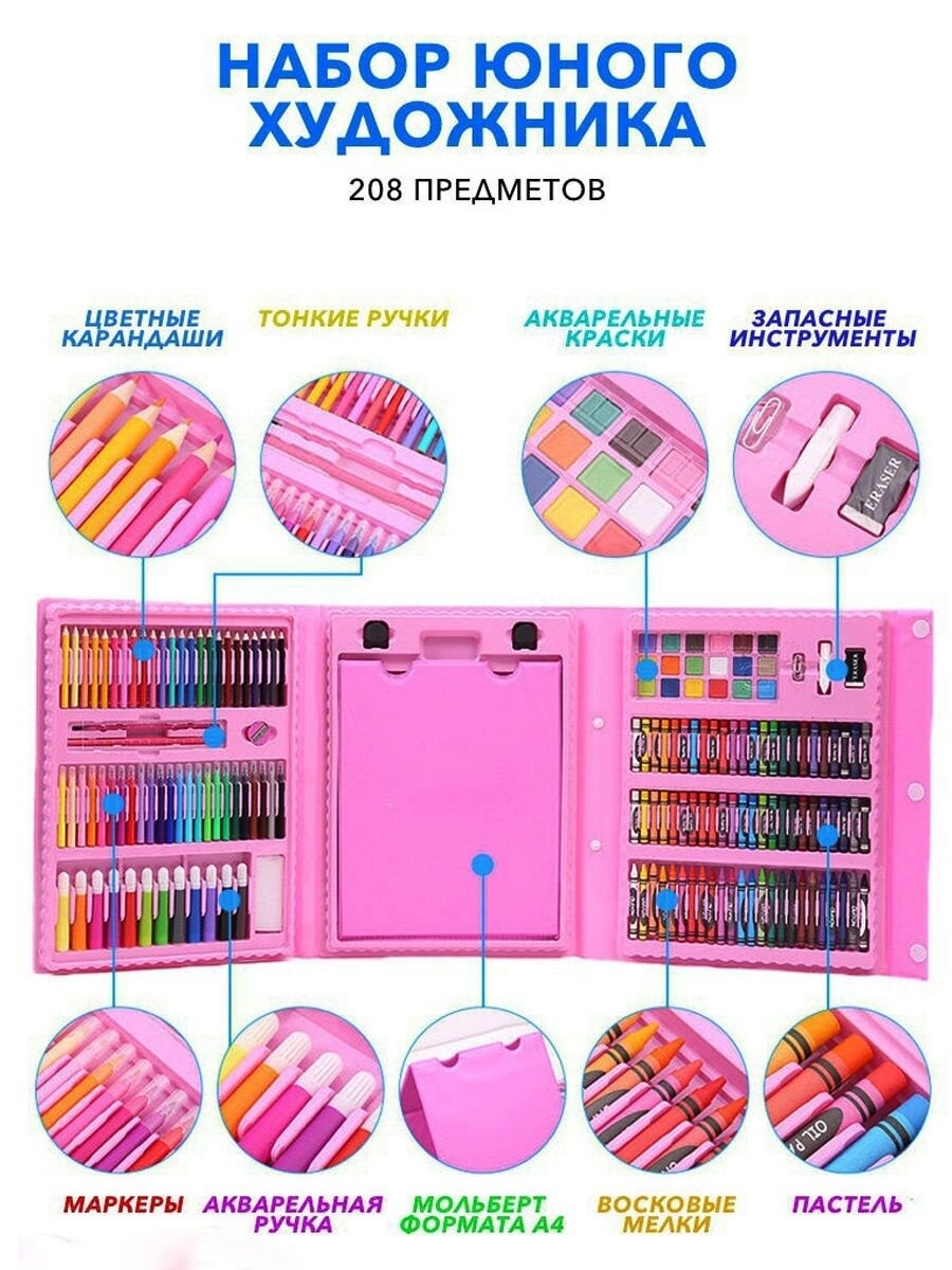Набор для рисования/ Набор для детского твочества/ Детский набор/Рисование для детей/208 предметов/