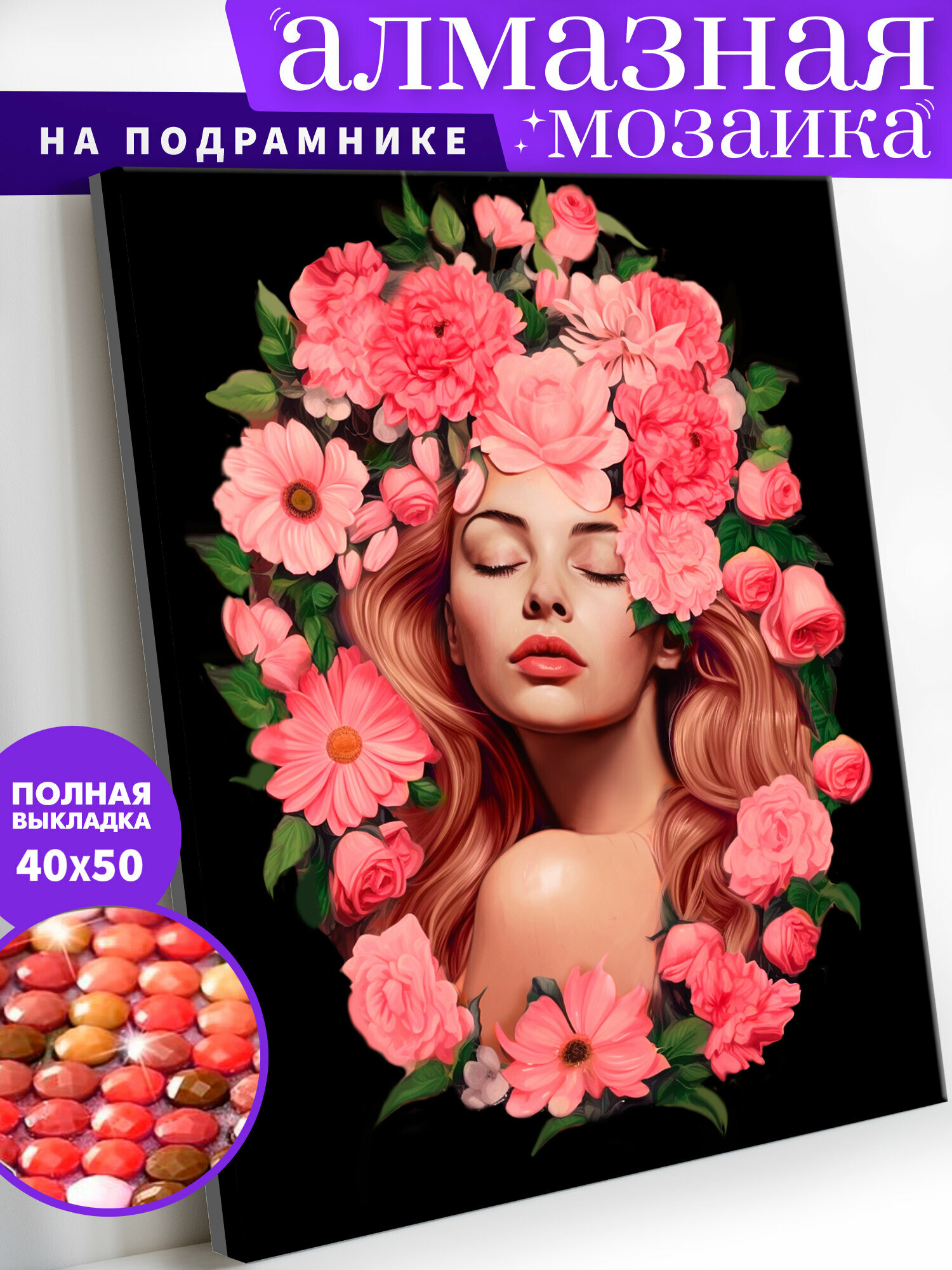 10 цен на Алмазная мозаика на деревянном подрамнике 40х50 см "Цветочный портрет" Алмазная вышивка. Картина стразами