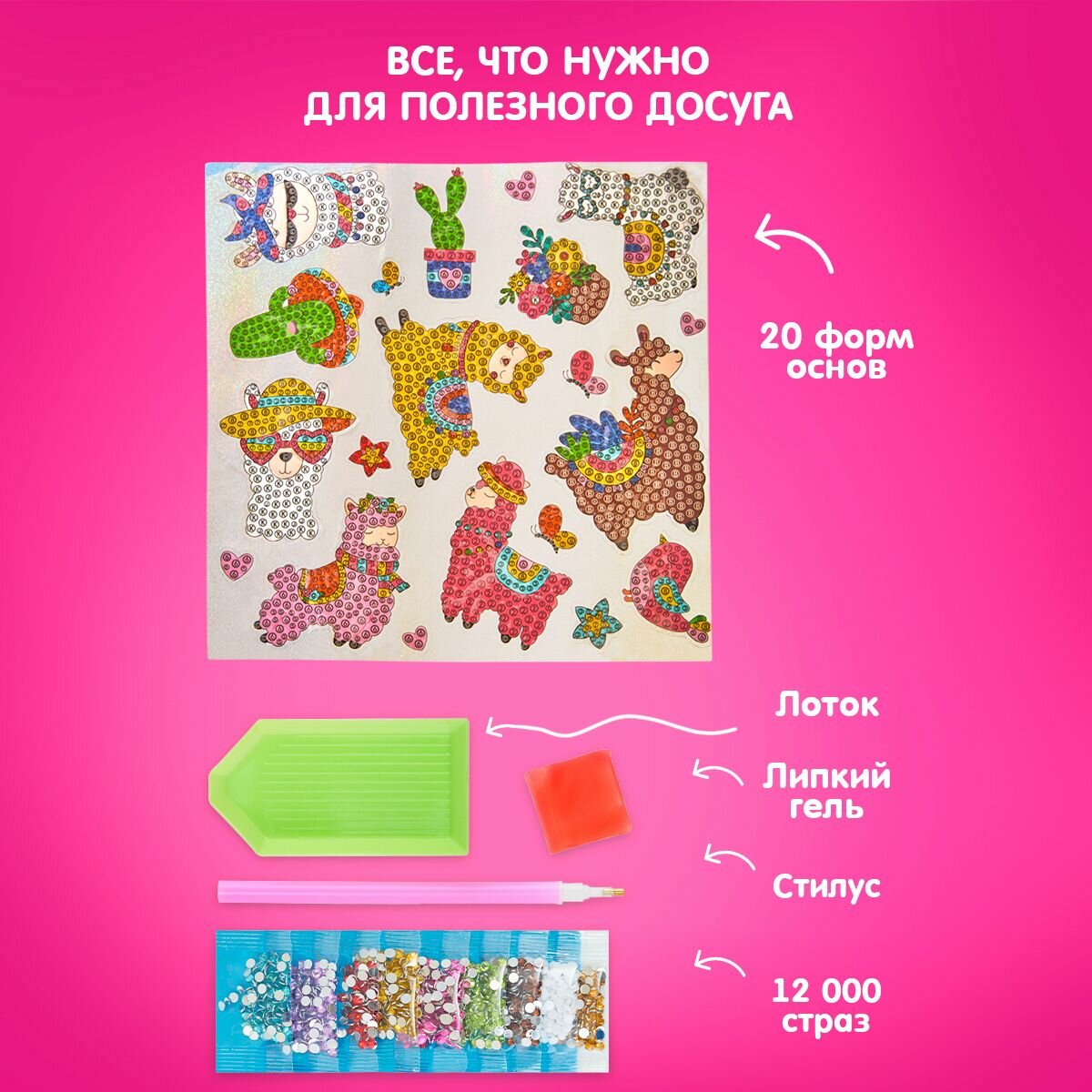 10 цен на Набор стикеров алмазная мозаика "Лама", Luzzi