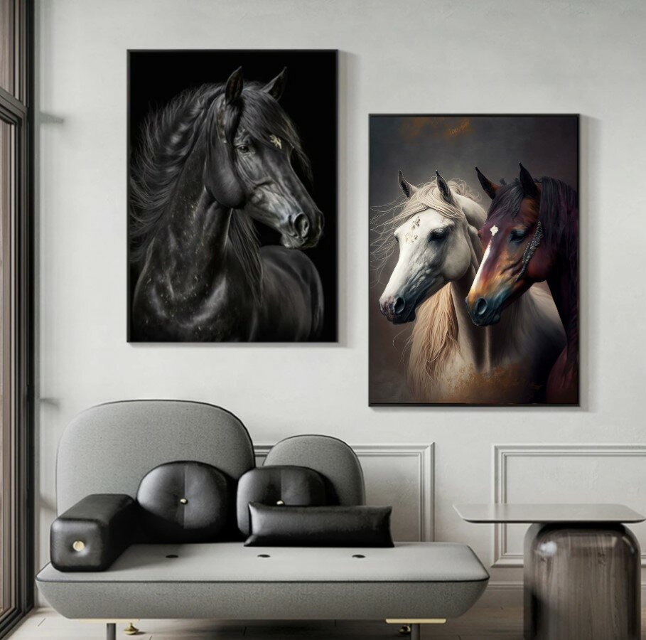 10 цен на Алмазная мозаика 40x50 см. на холсте с подрамником. Белый и коричневый кони в профиль