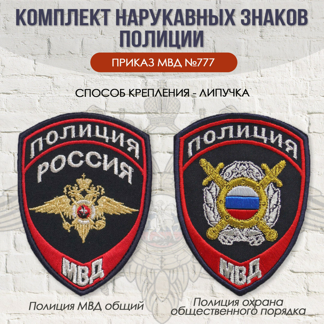 10 цен на Комплект нашивок Полиция приказ 777 тк. габардин вышивка метал. (МВД общий, МОБ) на липучке