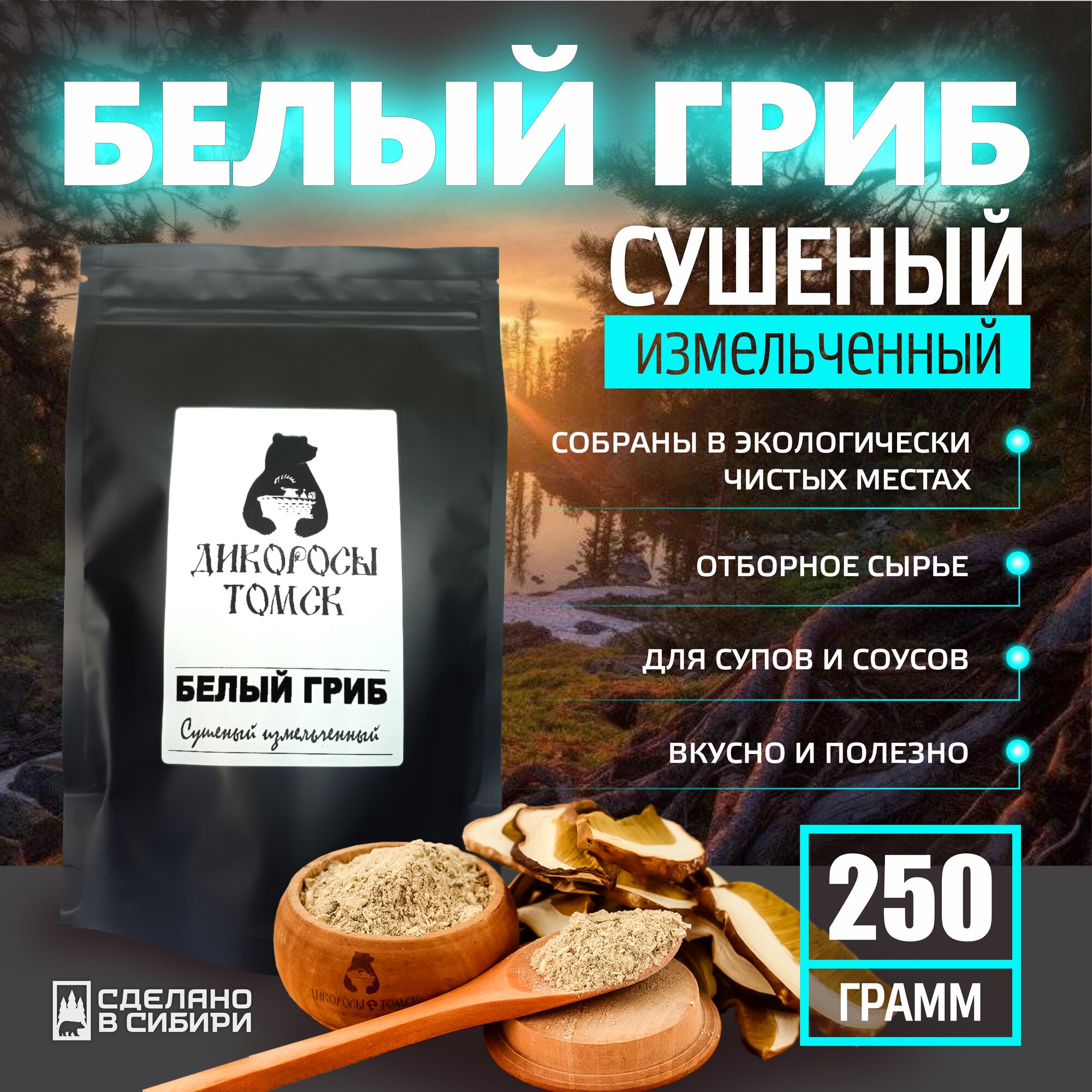 Белый гриб сушёный измельчённый 250 гр. информация: