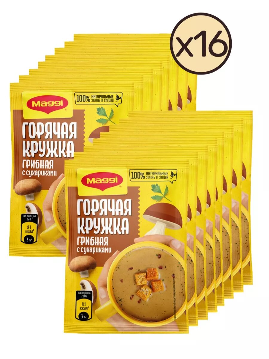 Суп моментального приготовления, Maggi "Горячая кружка. Грибная с сухариками", 20г 16 шт информация: