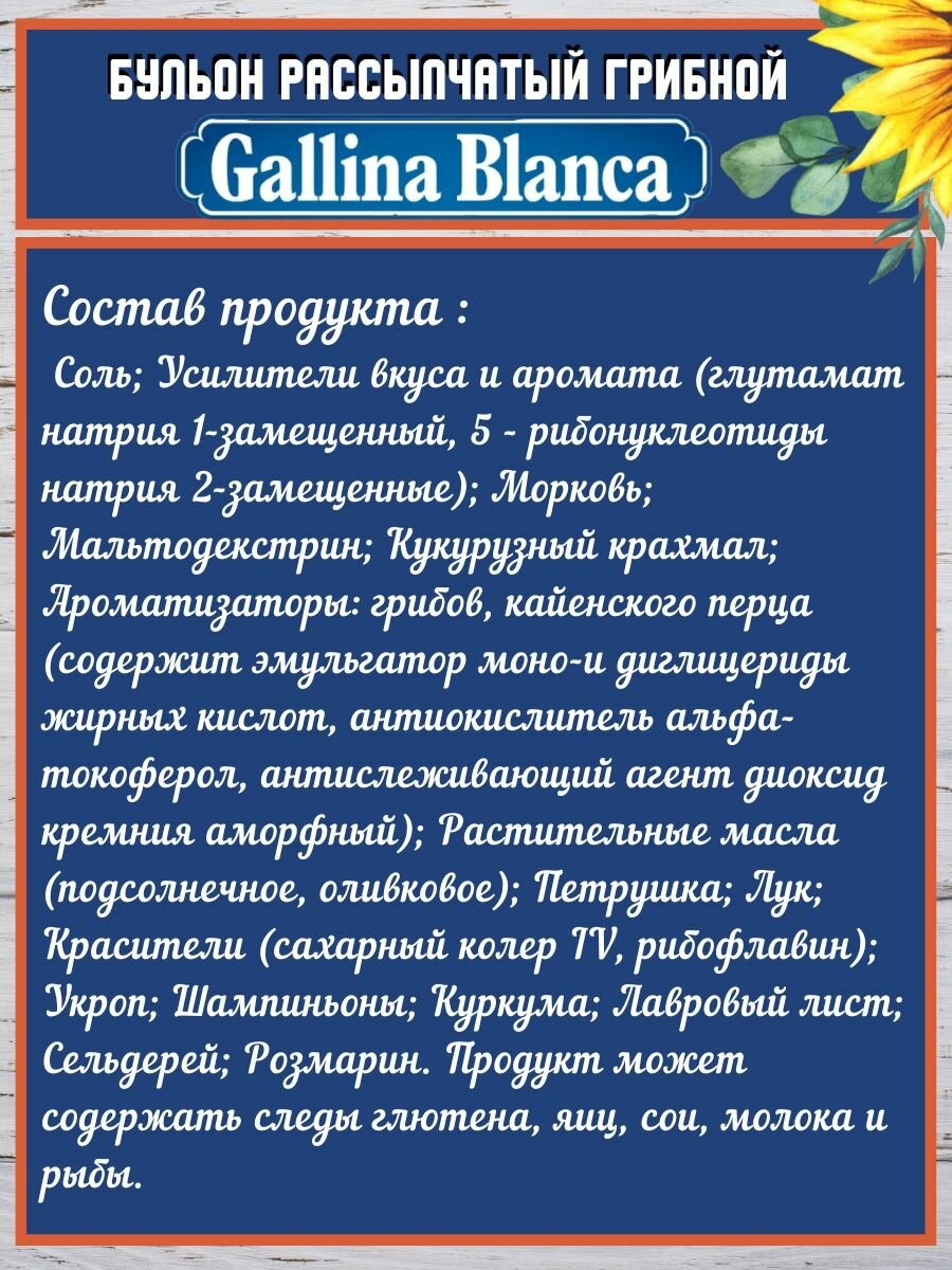 Gallina Blanca Бульон рассыпчатый грибной 6 пачек по 90гр. информация: