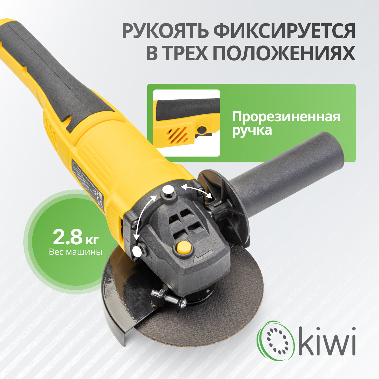 10 цен на УШМ болгарка KIWI KHAG-4114, 125мм. 11000 об/мин., проводная от сети 600 Вт. с защитой от перегрева и защитой от случайного пуска
