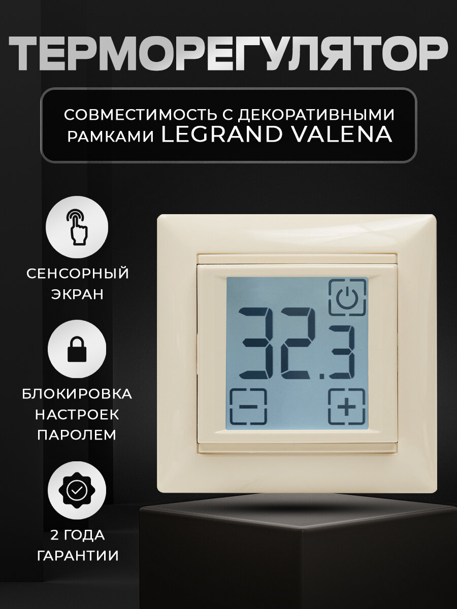 Терморегулятор сенсорный SDF-419B для теплого пола в рамку Legrand Valena информация: