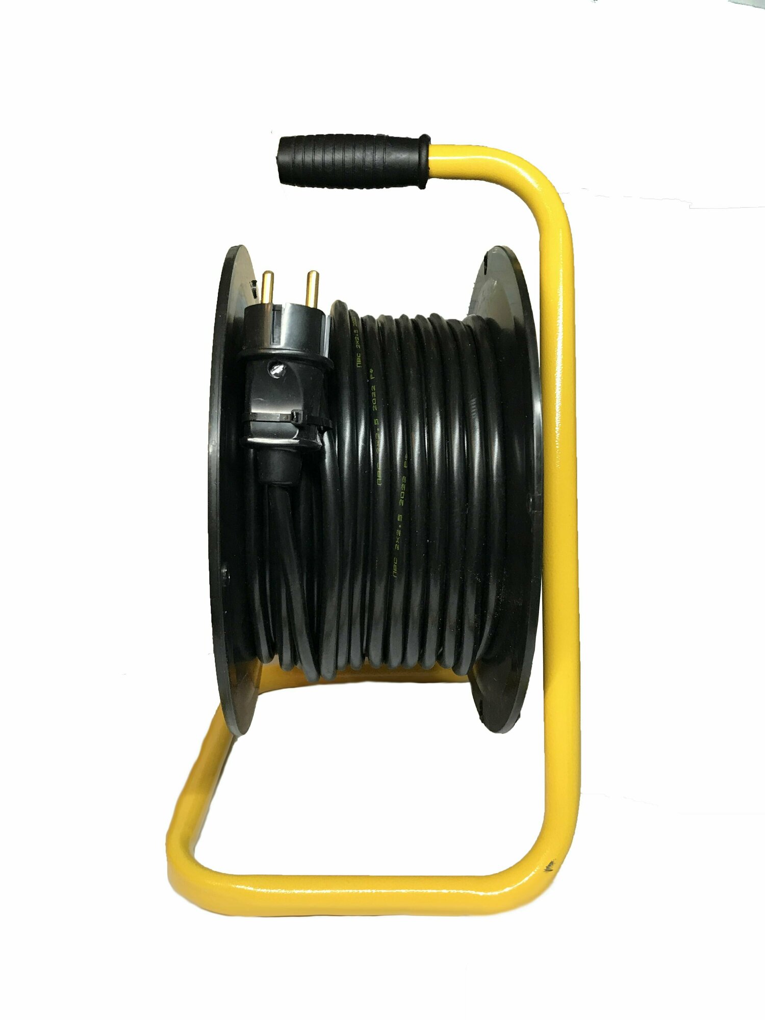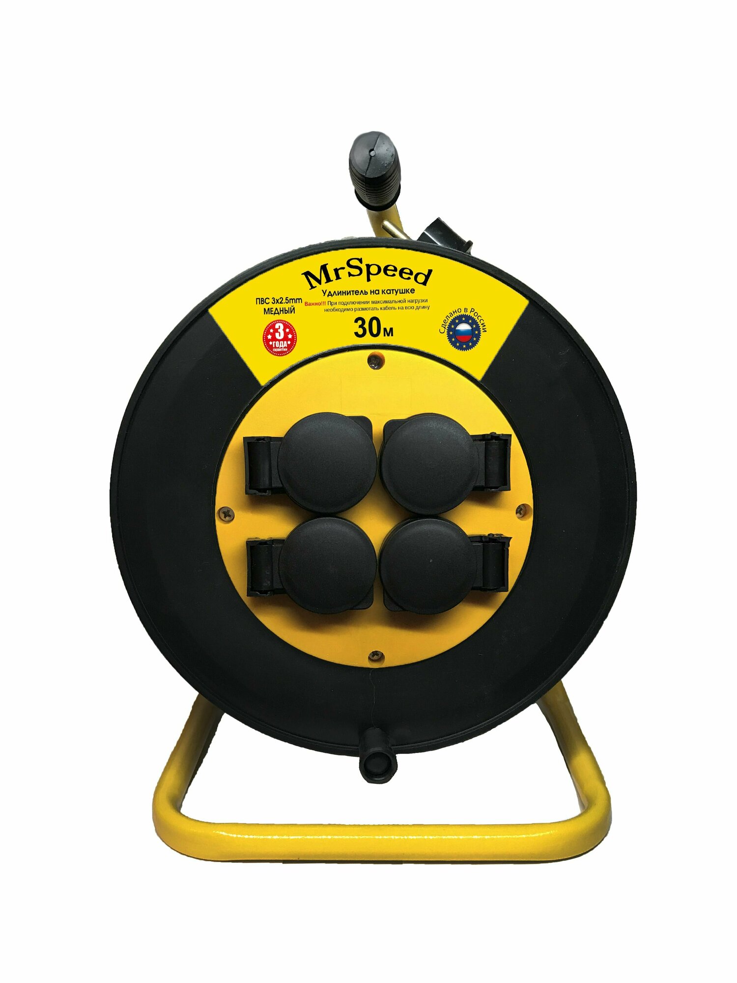 10 цен на Силовой удлинитель на пластиковой катушке c защитными крышками ПВС 3х2,5 mm 30 Метров/ IP54/ 4 Розетки/ С заземлением