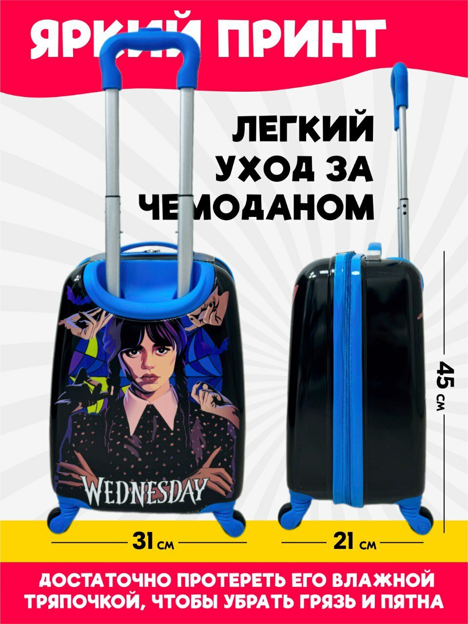 Чемодан на колесах детский Уэнсдей Аддамс. Ручная кладь, 45 см, 28 л. Дорожный чемодан на колесиках для путешествий и поездок. информация: