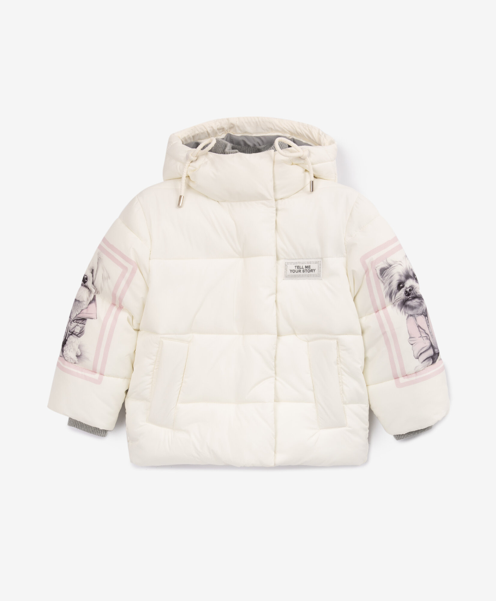 Куртка зимняя на искусственном пуху с принтами и нашивками молочная для девочки Gulliver, р.98, мод.22402GMC4104 информация:
