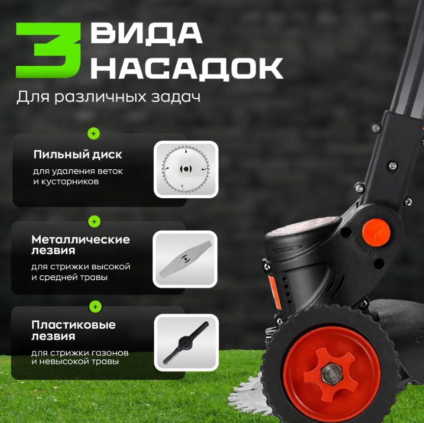 10 цен на Триммер аккумуляторный с колесной базой для дачи и сада + 2 акб