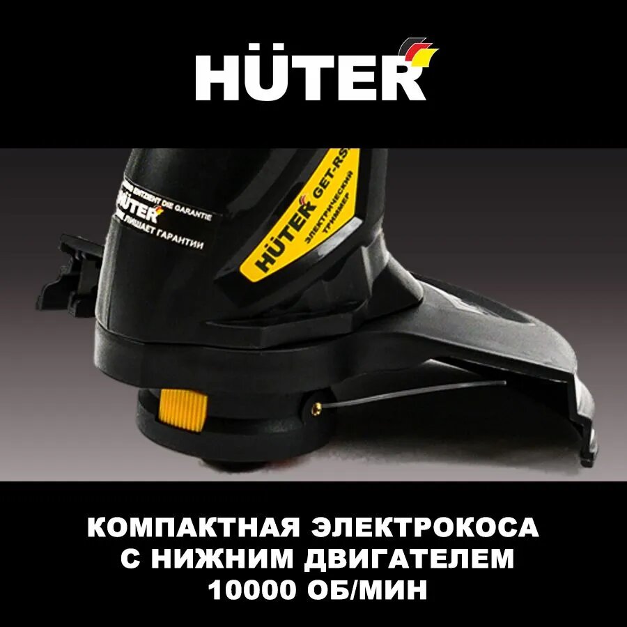 Электрический тример HUTER GET-RS22 350 Вт / компактная электрокоса с нижним двигателем, 10000 об/мин / газонокосилка со скашиванием леской - 240 мм